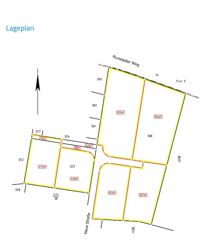 Fläche der Bauplätze: 448 m² - 937 m²