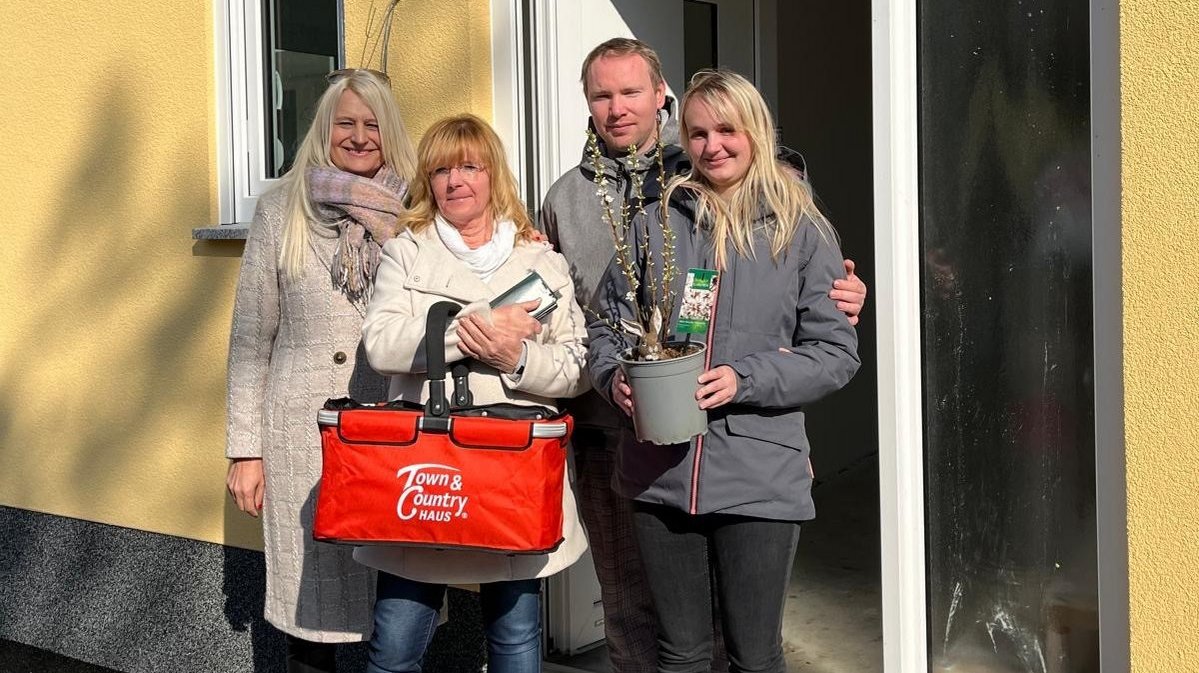 Es ist immer wieder etwas Besonderes, diesen Moment der Hausübergabe zu erleben – dieses Mal mit Hauskaufberaterin Babette Beier (links) und unserer Geschäftsführerin Sandra Herrmann (ganz links). Wir sind stolz, Teil dieses neuen Kapitels zu sein und freuen uns, dass wir dieses Traumhaus für unsere Bauherrenfamilie bauen durften.