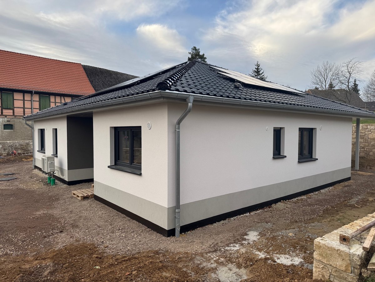 Der Bungalow 128 im Molauer Land vereint großzügiges Wohnen auf einer Ebene mit moderner Architektur und durchdachtem Komfort. Auf rund 128 Quadratmetern Wohnfläche bietet er helle, offene Räume, kurze Wege und eine harmonische Raumaufteilung – ideal für Familien oder Paare, die barrierearmes Wohnen mit Stil genießen möchten. Der weitläufige Wohn- und Essbereich schafft eine einladende Atmosphäre für gemeinsames Leben und Entspannen.